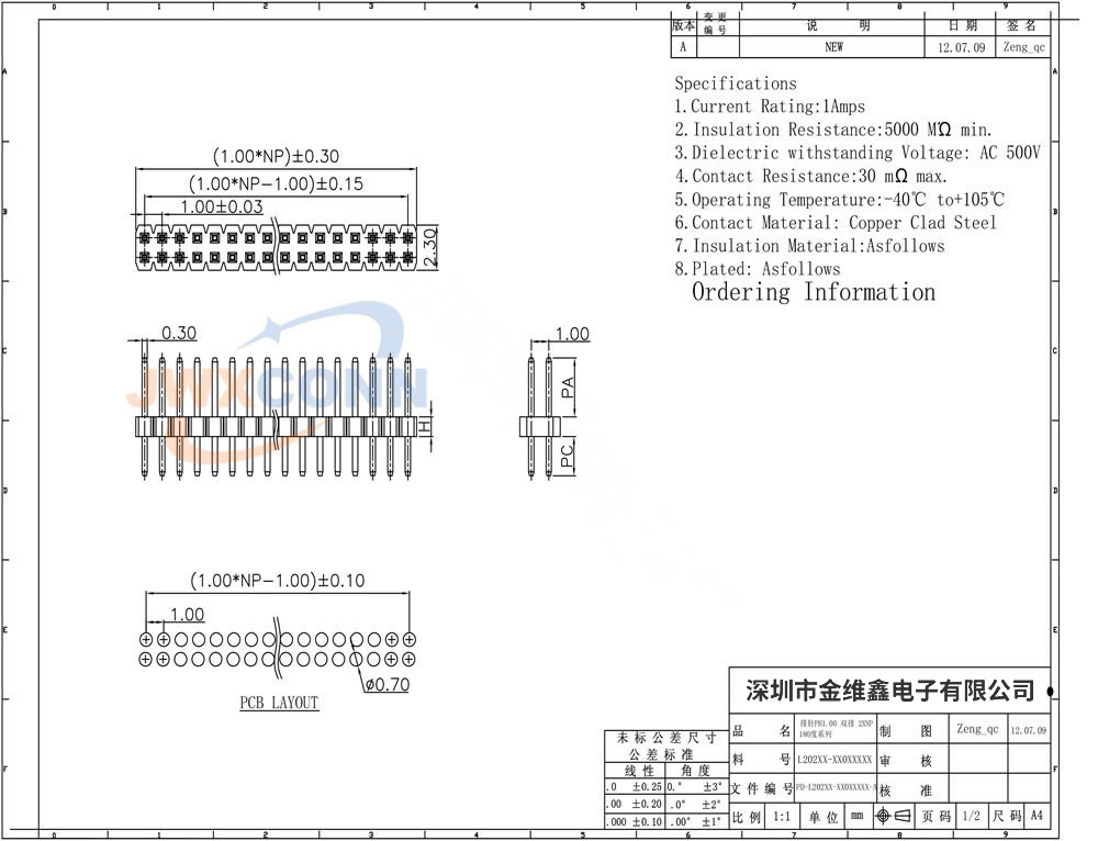 1.27mm间距 单排双塑 ...