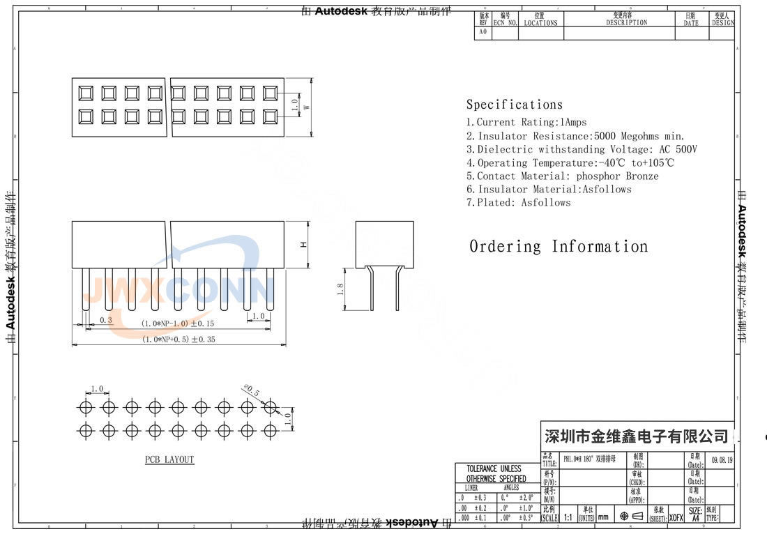 2.0mm间距 双排 U型 ...