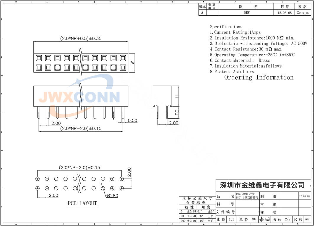 2.0mm间距 双排 U型 ...