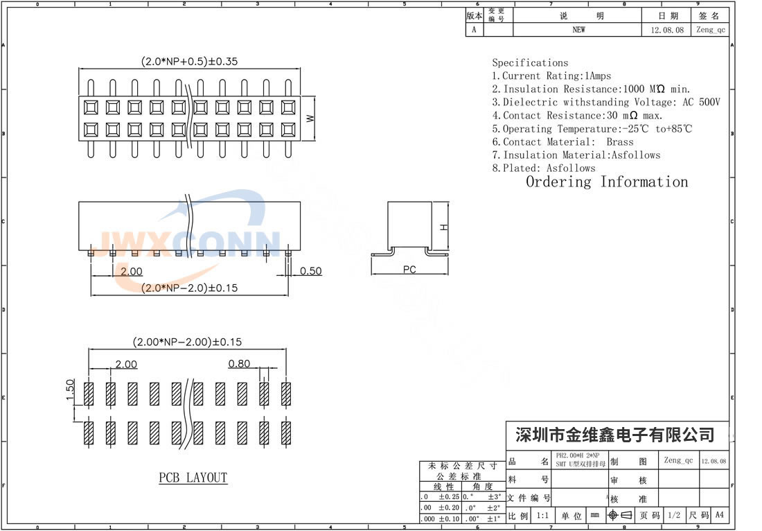 2.0mm间距 单排 U型 1...