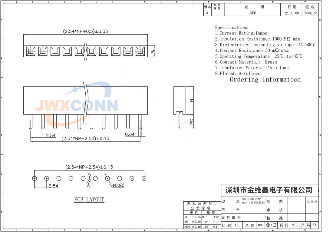2.54mm间距 单排 U型 ...