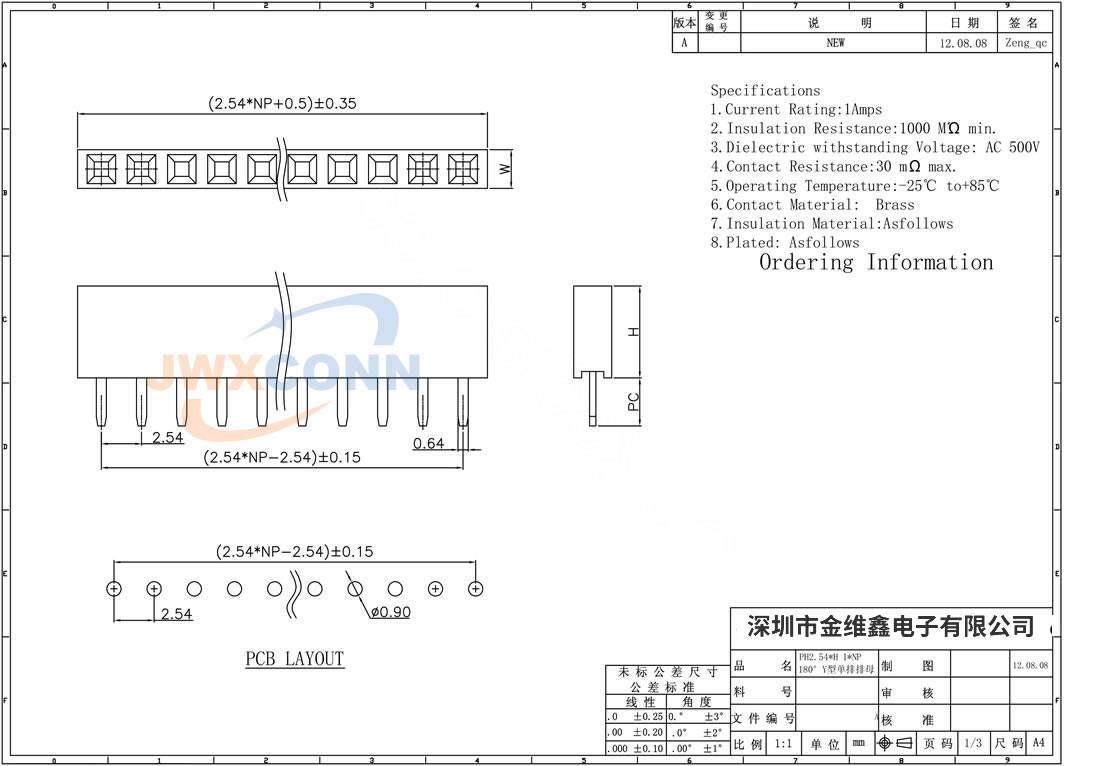 2.54mm间距 单排 Y型 ...