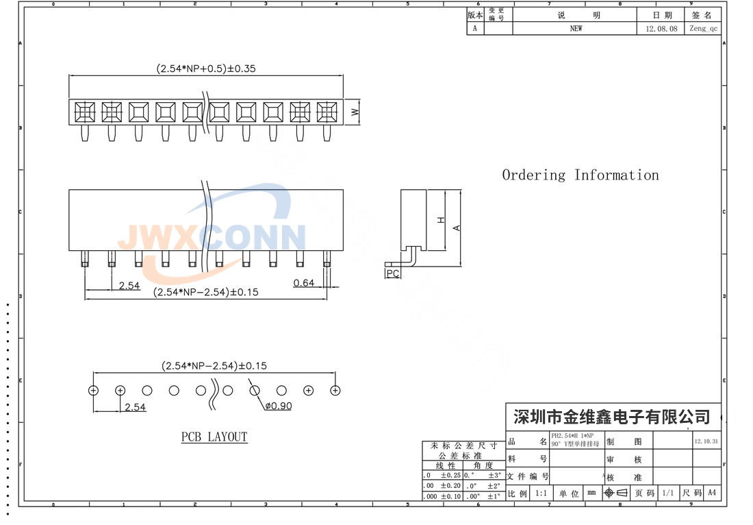 2.54mm间距 单排 Y型 ...