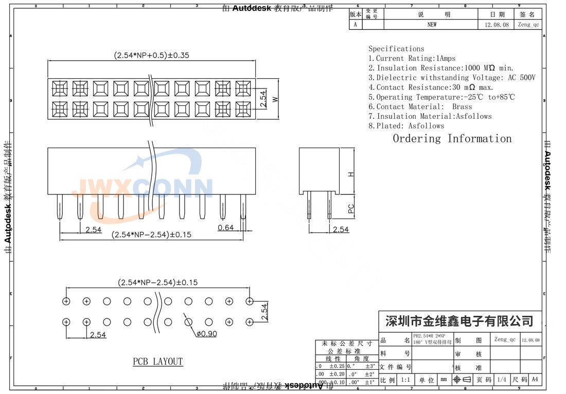 2.54mm间距 双排 Y型 ...