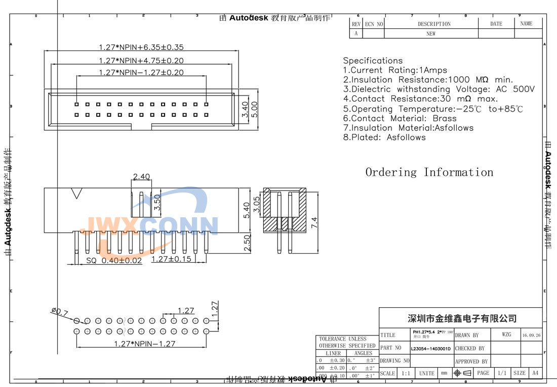 1.27mm间距 180度