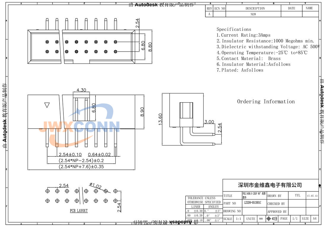 2.54mm间距 180度