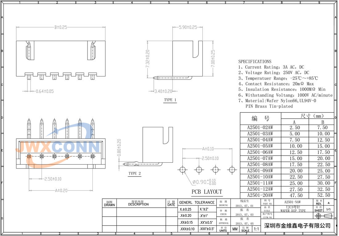 2.5mm间距 单排 180度...