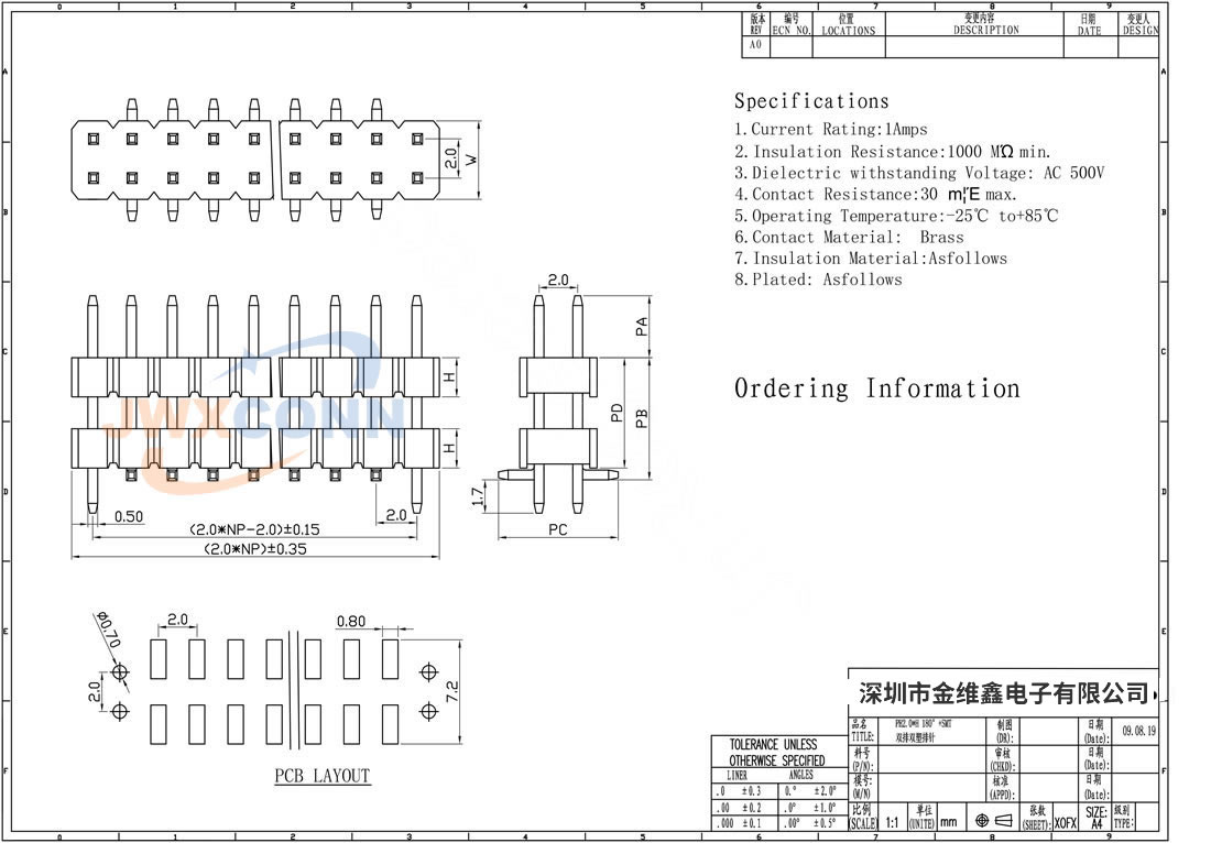 2.0mm间距 双排双塑 立贴