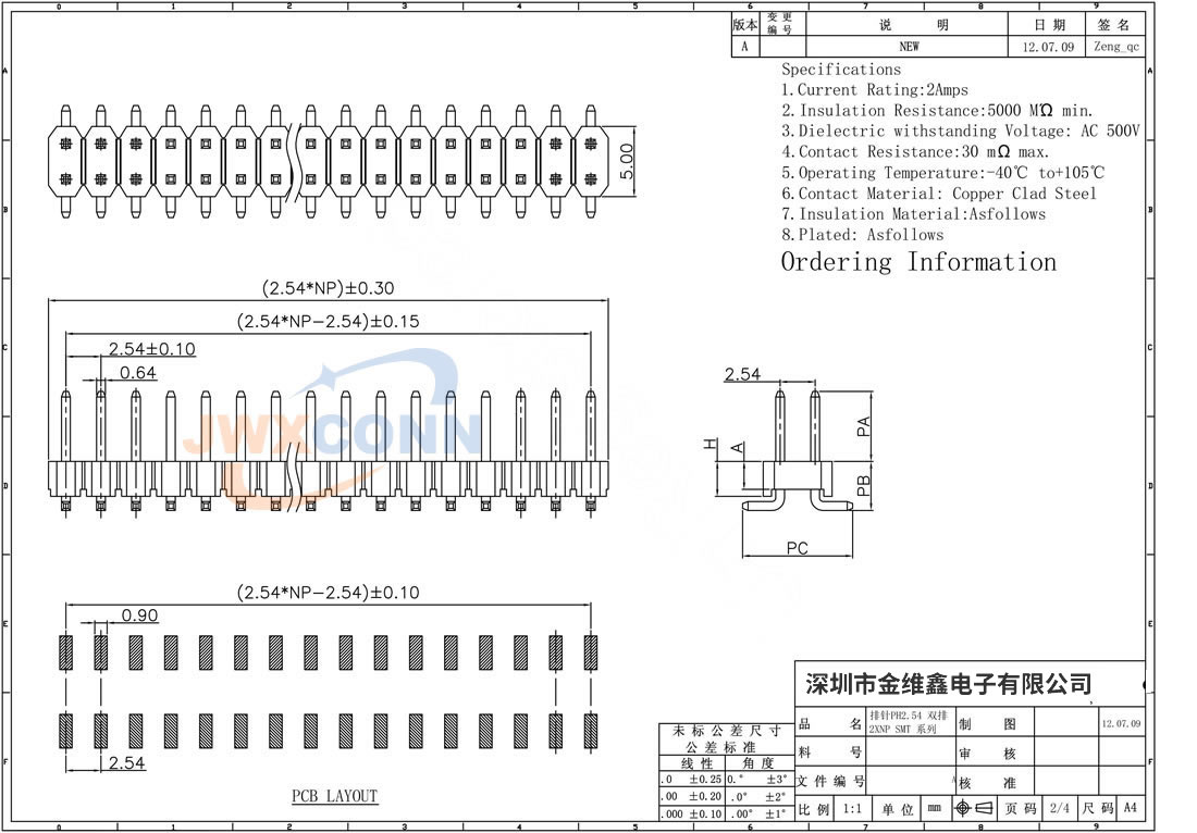 2.54mm间距 双排双塑 立贴