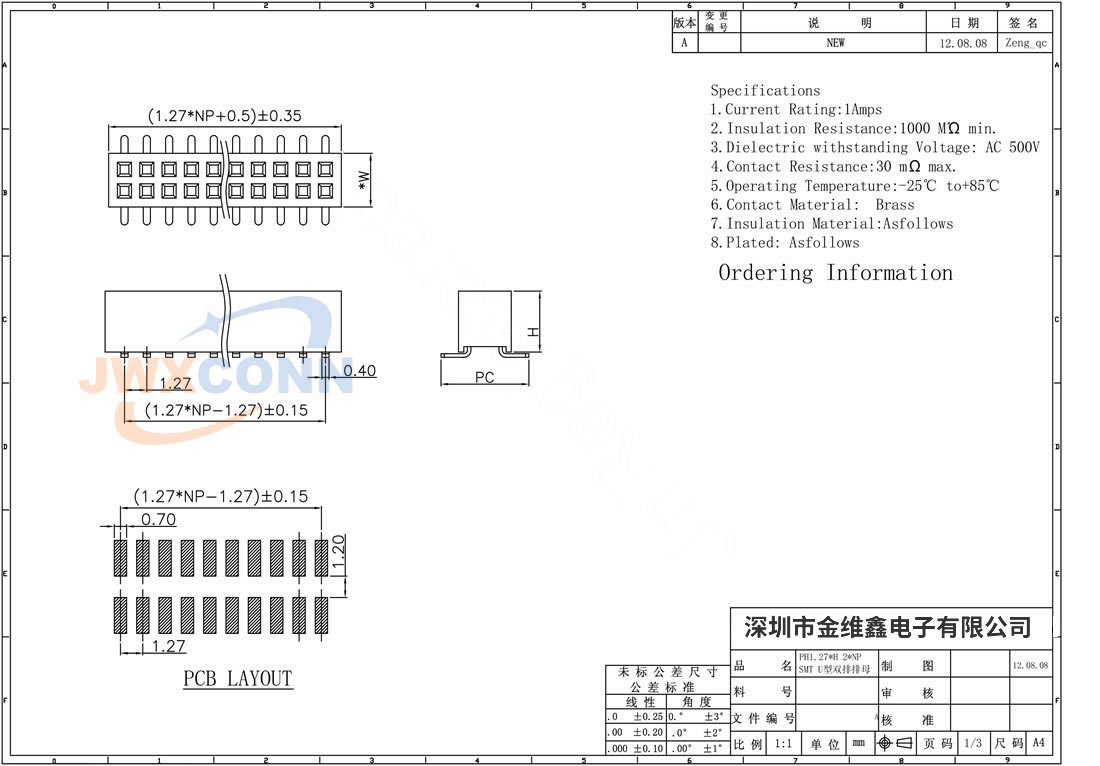 1.27mm间距 单排 U型 立贴